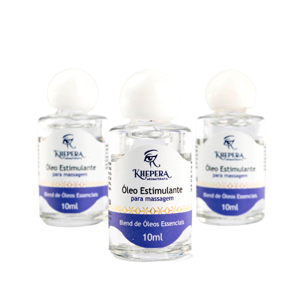 2. Massagem Sensorial Misture 1ml do Óleo Khepera em 5ml de óleo de amêndoas (ou outro óleo vegetal de sua preferência) e massageie o corpo, ativando a circulação e o relaxamento.